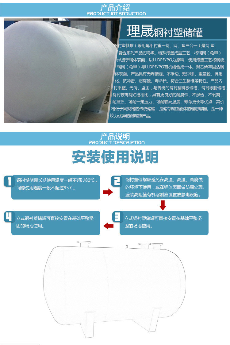 滾塑儲(chǔ)罐(聚乙烯塑料儲(chǔ)罐、鋼襯PE儲(chǔ)罐)選購(gòu)和使用說(shuō)明: